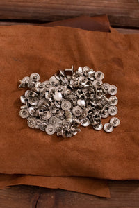 Die Hohlnieten bestehen aus Oberteil (Kappe) und offenem Unterteil (Fuß).